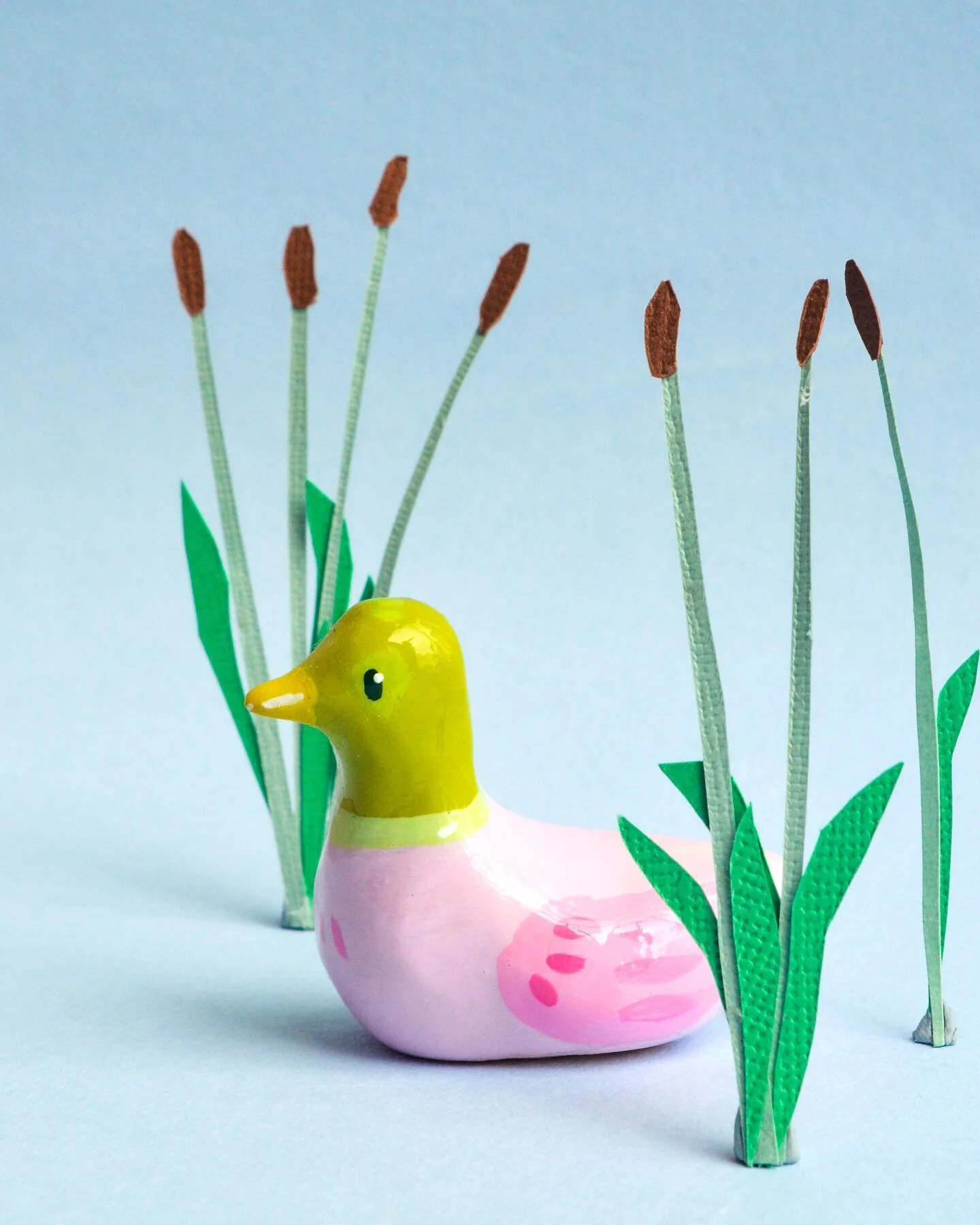 My work consistes of fun handmade polymer clay pieces, often of my own quirky animal characters, which feature in my illustrations as well as being available to buy as decorations. My practice involves model making and mini set building which I then photograph and digtially edit to produce final illustrations.
